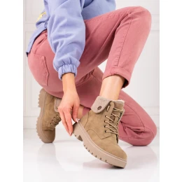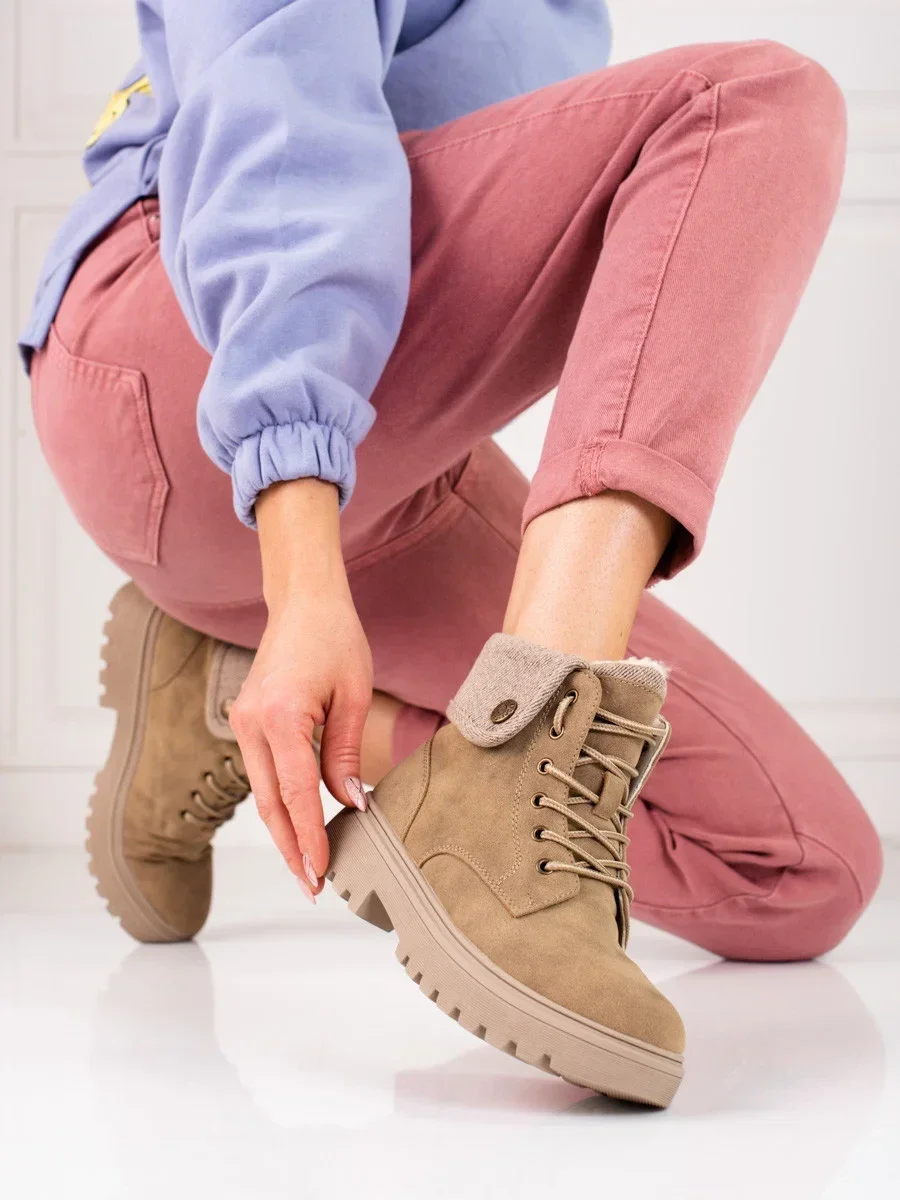 Exkluzívní kotníčkové boty dámské hnědé na plochém podpatku