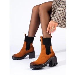 Exkluzívní kotníčkové boty dámské hnědé na širokém podpatku