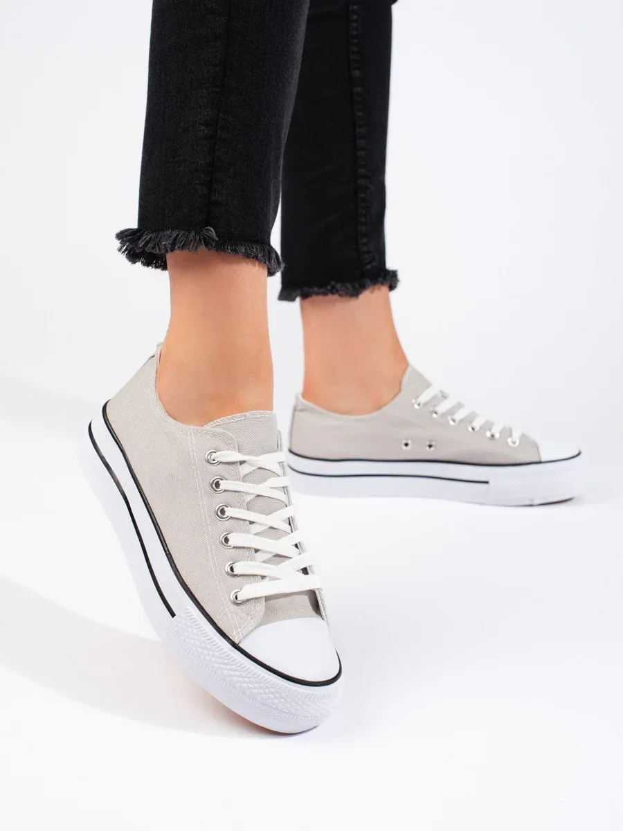 Exkluzívní tenisky šedo-stříbrné dámské bez podpatku