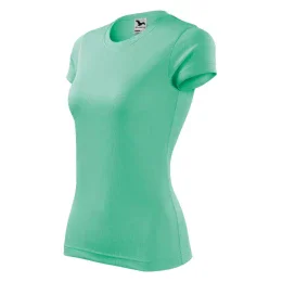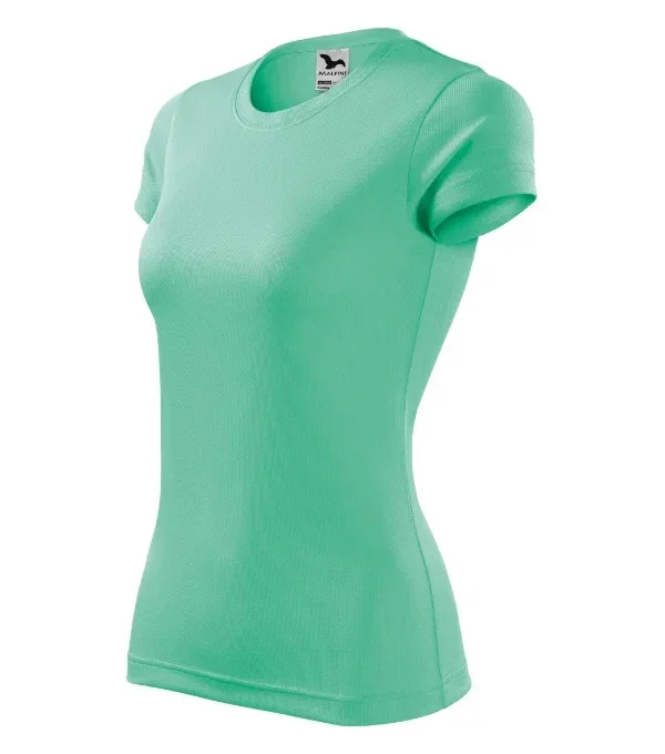 rychleschnoucí materiál lehce vypasovaný střih s bočními švy úzký lem průkrčníku z vrchového materiálu vnitřní část průkrčníku začištěna páskou z vrchového materiálu zpevnění ramenních švů páskou ideální pro sport a pohybové aktivity vhodné pro sublimační potisk (světlé barvy)