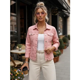 Džínová bunda na míru kombinuje klasické tvary s ženským zpracováním. Krátká délka zdůrazňuje proporce siluety a dobře se kombinuje s modely s vysokým pasem. Zapínání na knoflíky a vnější kapsy zvyšují praktičnost. Strečová tkanina zajišťuje pohodlí při každodenním nošení.