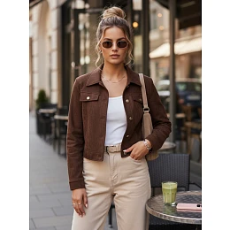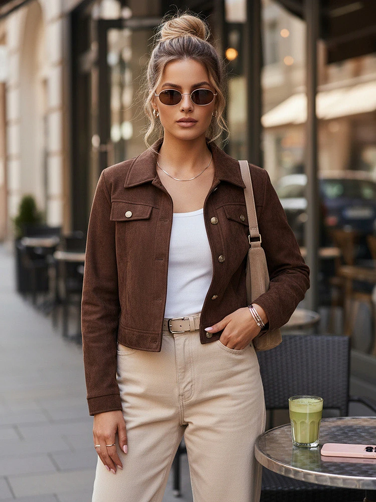 Bunda krátkého střihu kombinuje klasický styl s jemnou elegancí inspirovanou městskou módou. Měkká struktura materiálu jí dodává jedinečný charakter a podtrhuje estetické zpracování. Model je pečlivě navržen tak, aby zajišťoval pohodlí při nošení a všestrannost při každodenním stylingu, a hodí se jak k ležérním, tak k ženštějším kompletům.