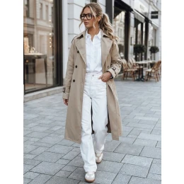 Tento dámský trenčkot má klasický, nadčasový design s dvouřadým zapínáním a páskem v pase. Hladká konstrukce zvýrazňuje siluetu a udržuje elegantní styl. Lehký materiál se dobře osvědčuje v přechodném období pro pohodlí při každodenním nošení a střih se dobře hodí k městskému a kancelářskému stylu.