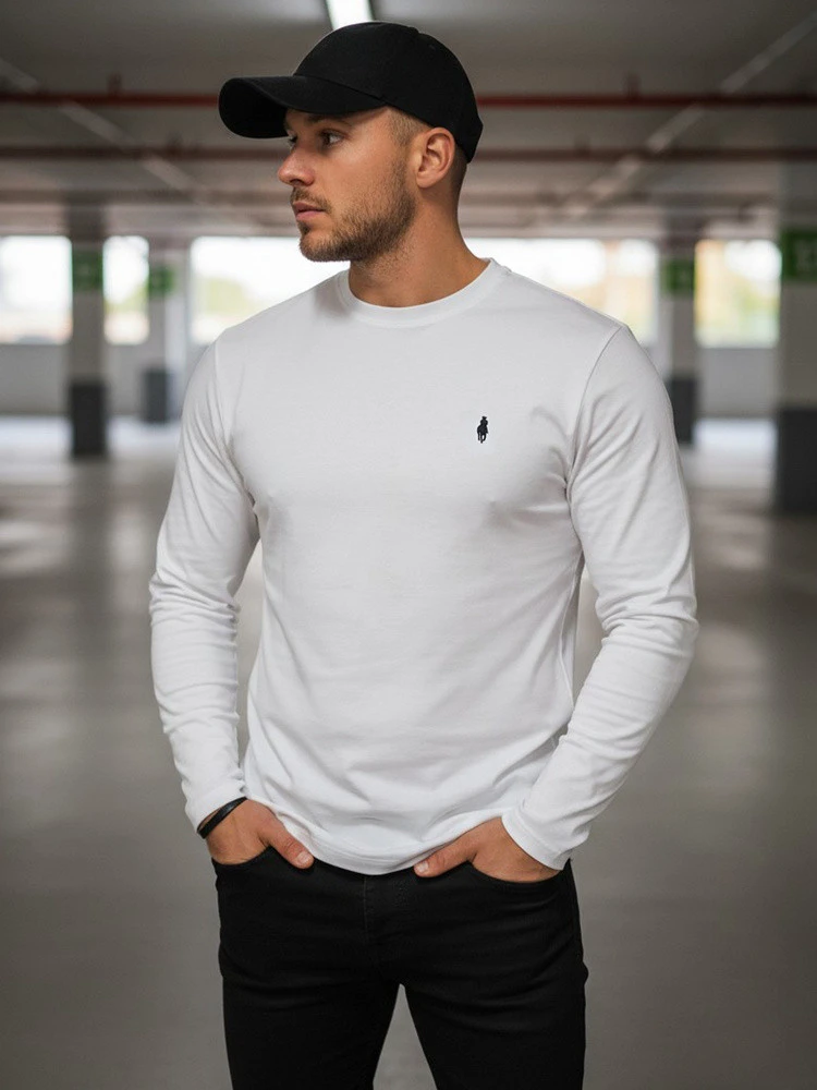 FashionStreet pánské bílé tričko s dlouhým rukávem LX0564