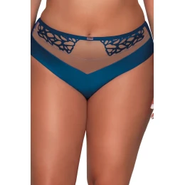 Plné dámské kalhotky, přední díl ozdobený výšivkou, zadní díl z mikrovlákna a tylu.