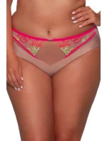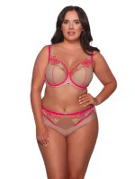 Biustonsoz półusztywniony, miseczki od wewnątrz wyścielone zostały miękką pianką dla optymalnego kształtowania piersi, na zewnątrz zaś pokrywa je cielisty tiul przecięty różowym szwem oraz niebanalny kwiatowy haft w energetycznych odcieniach wyciągnięty poza miski. Różowe lamówki tworzą swoistą ramę biustonosza, a dwukolorowe ramiączka i haftowane wstawki rozpięte między ramiączkiem a miseczką dodają lekkości i uroku. Bestsellerowa konstrukcja należycie zadba o zebranie i uniesienie biustu, a także o jego komfortowe podtrzymanie, a fikuśne figi świetnie uzupełnią całość. Zakochaj się w barwnej Tropei!