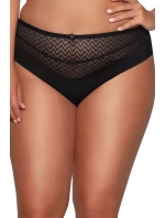 Wysokie figi, które łączą elegancję z codziennym komfortem. Wykonane z gładkiego, przyjemnego w dotyku materiału, zapewniają idealne dopasowanie i modelowanie sylwetki. Górna część fig ozdobiona jest delikatnym, półprzezroczystym tiulem w modny, geometryczny wzór w jodełkę, co nadaje całości nowoczesnego charakteru. Tył wykończony szeroką listwą tak aby figi nie odznaczały się pod odzieżą. Doskonałe zarówno pod dopasowane ubrania, jak i na co dzień, kiedy liczy się wygoda i styl.