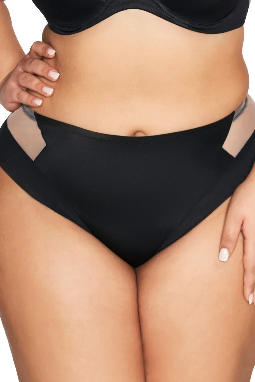 Hladký klasický spodní díl bikin zdobený béžovou síťovinou
