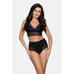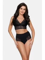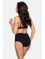 Kalhotky s vysokým pasem ozdobené průsvitnými všivkami a se zajímavě řešeným pozadím. Mají ploché a ultratenké okraje ušité pomocí technologie INVISIBLE_LINE a díky tomu nejsou vidět pod obepnutým oblečením. Kalhotky tvarují pas, břicho i zadeček. V rozkroku mají bavlněnou všivku. 88% polyamid, 12% elastan.