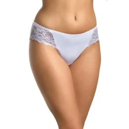 Klasické dámské mini bikiny z vysoce kvalitního bavlněného úpletu s přídavkem lycry pro dokonalé přizpůsobení postavě. Boky modelu jsou vyrobeny z měkké a na dotek příjemné krajky. Vše je zakončeno bavlněnou lamówkou. Uprostřed je malá květina.