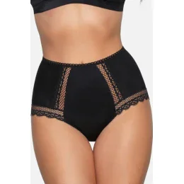 Dámské kalhotky s vysokým sedem a krajkovými vsadkami vpředu.