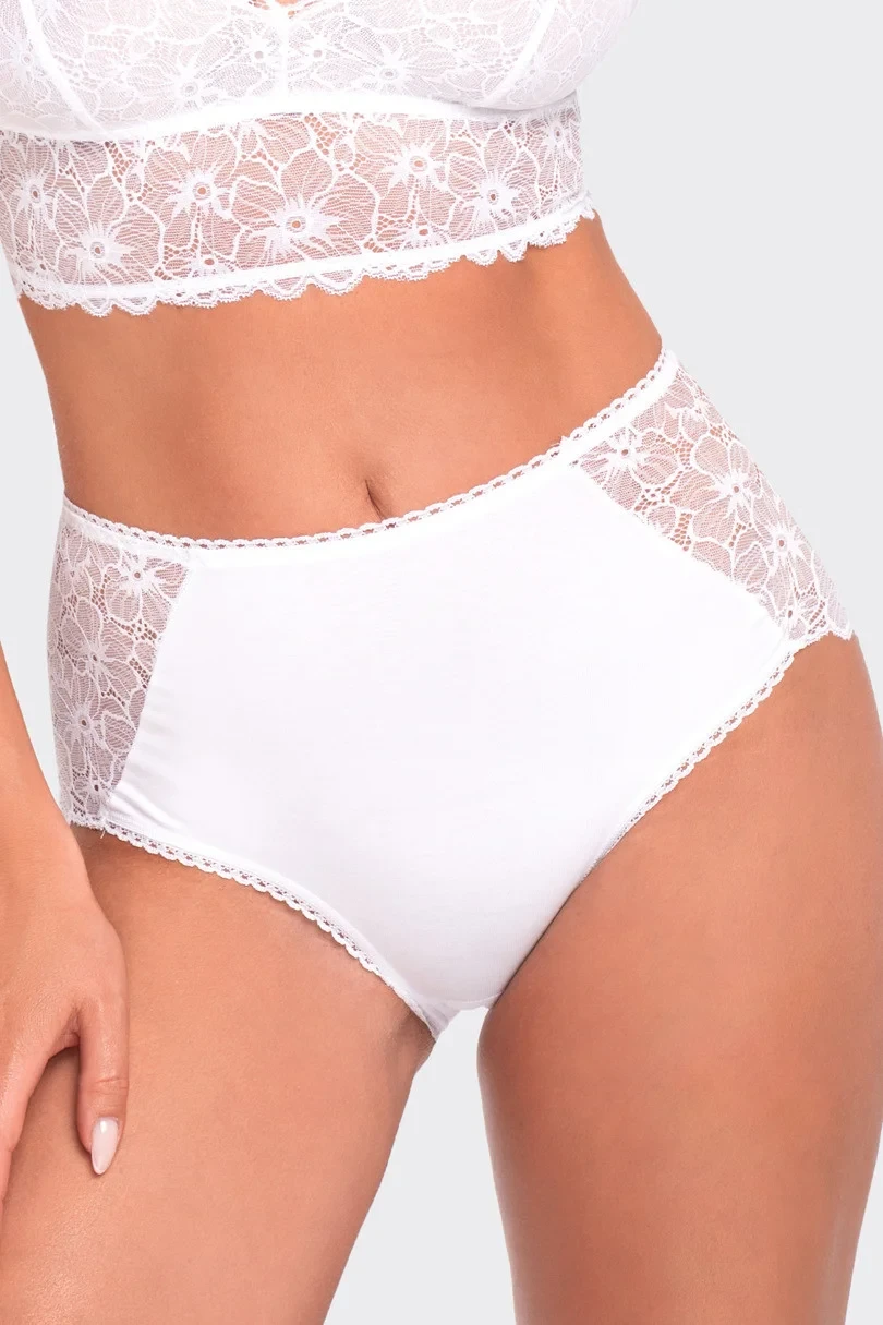 Dámské bavlněné kalhotky s vysokým pasem, prodyšná tělová bavlna se dokonale snoubí s širokou krajkou.