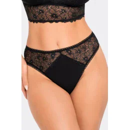 Dámské bavlněné kalhotky s vysokým pasem, zdobené krajkou.