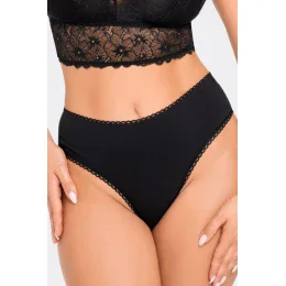 Dámské bavlněné kalhotky s vysokým pasem , zadní díl je zdobený výraznou krajkou.