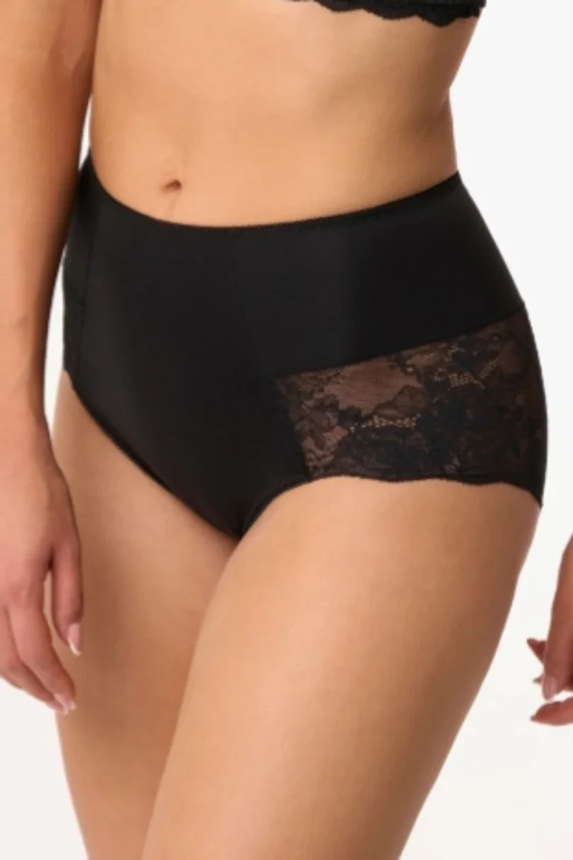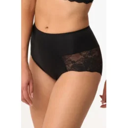Figure-modeling bikini with a full and built-up cut. The cut keeps the silhouette under control, while the breathable material allows you to feel fresh and comfortable. Hips and back are trimmed with a striking floral lace motif.