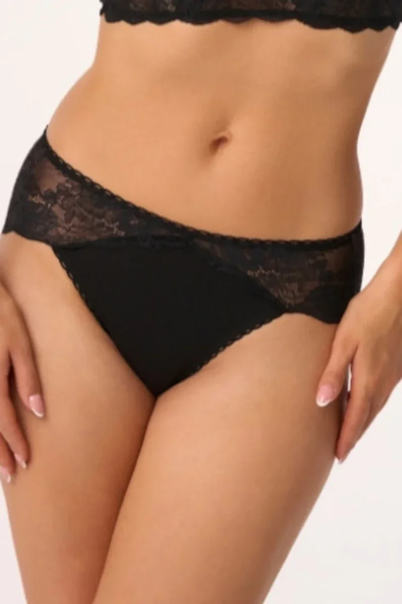Klasické kalhotky, kombinace bavlny a krajky.