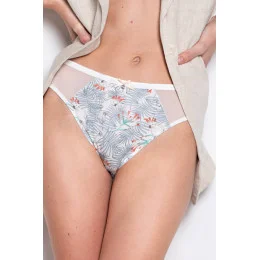 Dámské bavlněné kalhotky. V balení po 2 kusech, jeden hladký, druhý s potiskem, vzadu zakončený jemnou krajkou.