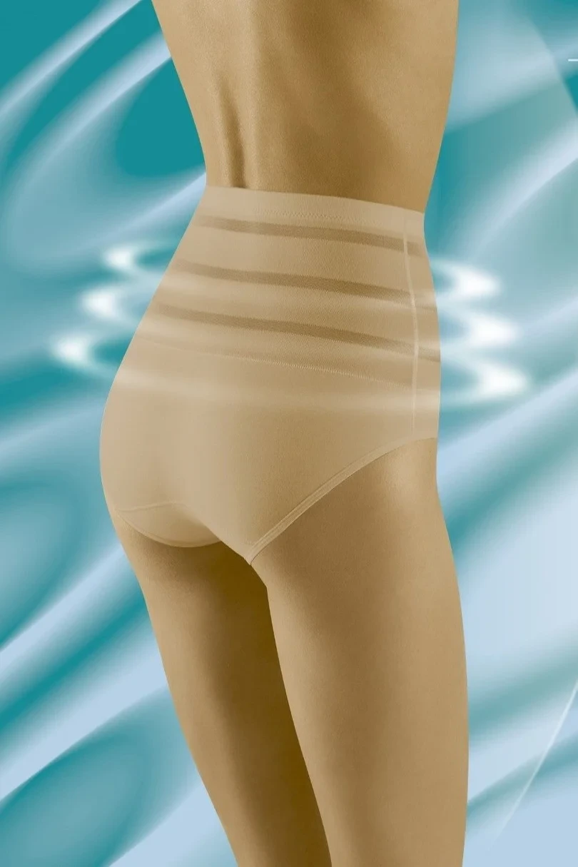 Dámské kalhotky s vysokým střihem, které obepínají postavu. Zplošťují břicho a zvýrazňují linii pasu. Pas je podšitý silikonovou gumou, která zabraňuje sjíždění a posouvání prádla.