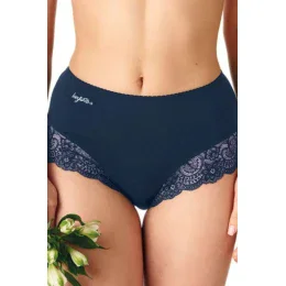 Spodní díl s vysokým pasem a velmi širokými boky, plně zakrývající břicho a boky, ozdobné krajkové vsadky Složení: 95 % bavlna, 5 % elastan Spodní díl je balený po 2 kusech. Cena je uvedena za balení.