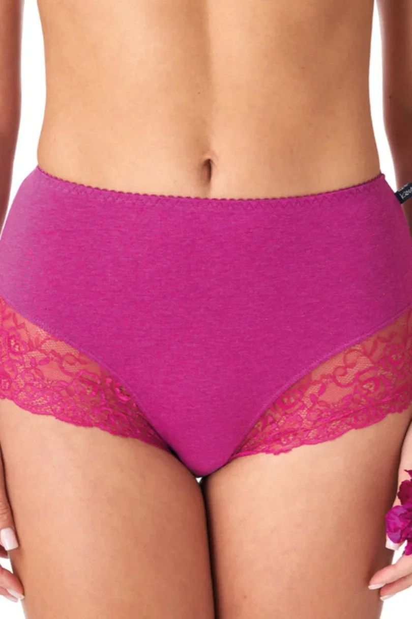 Dámské kalhotky midibikini, s vyztuženými boky, z kvalitní vzorované bavlny a krajky.Balení obsahuje dva kusy ve vyobrazených barvách.