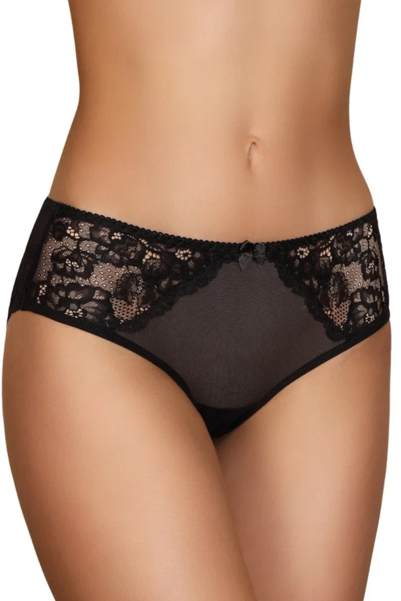 Dámské kalhotky, které jsou vyrobené z jemné síťoviny a krajky.