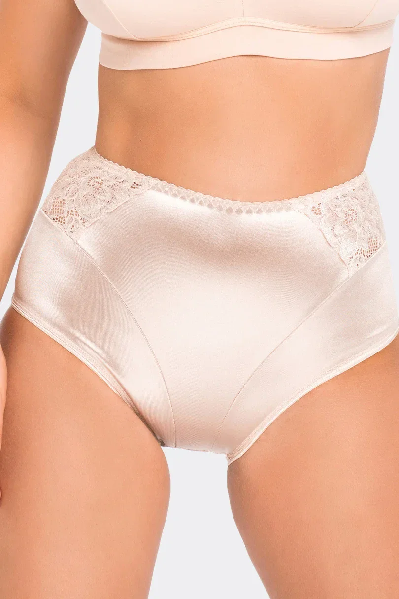 Postavě lichotivý spodní díl bikin plného a vypasovaného střihu s vyšším pasem, vyrobený z hladkého polyamidového úpletu
