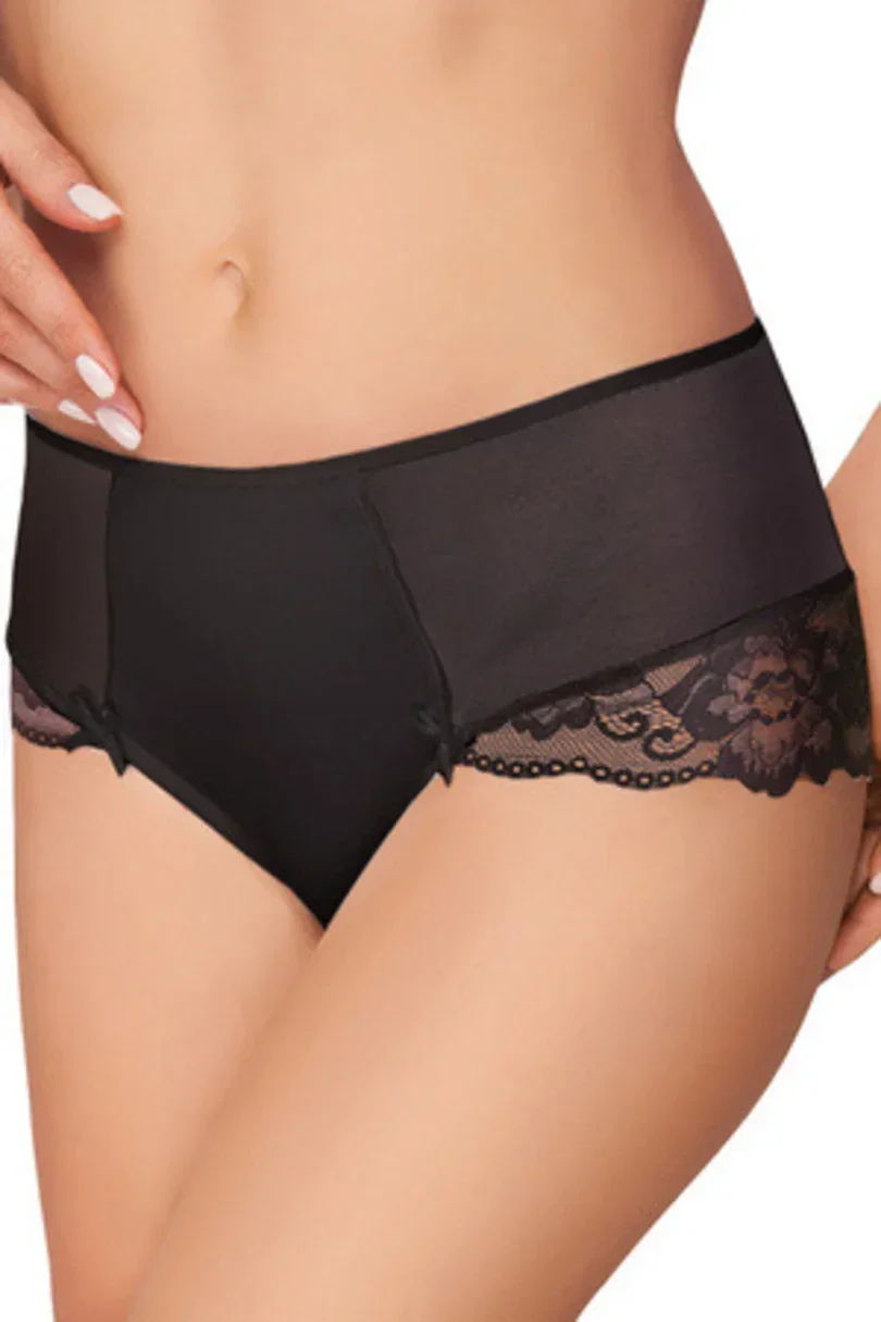 Šortky z hladkého mikrovlákna a jemné průsvitné tylové síťoviny s výraznou krajkou s květinovým motivem ve spodní části.