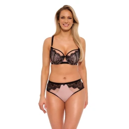 - přední a zadní díl z pudrově růžového mikrovlákna, prolamované krajky a síťoviny