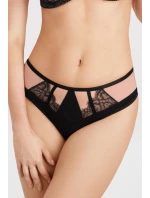 Wysokie figi, które łączą elegancję z codziennym komfortem. Wykonane z gładkiego, przyjemnego w dotyku materiału, zapewniają idealne dopasowanie i modelowanie sylwetki. Górna część fig ozdobiona jest delikatnym, półprzezroczystym tiulem w modny, geometryczny wzór w jodełkę, co nadaje całości nowoczesnego charakteru. Tył wykończony szeroką listwą tak aby figi nie odznaczały się pod odzieżą. Doskonałe zarówno pod dopasowane ubrania, jak i na co dzień, kiedy liczy się wygoda i styl.