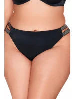 Dodaj swojej plażowej stylizacji nuty zmysłowości i luksusu dzięki figom kąpielowym typu brazyliany z ozdobnymi paskami po bokach. Gładka, czarna tkanina w połączeniu z delikatnie połyskującymi detalami tworzy elegancki, a zarazem kobiecy efekt.