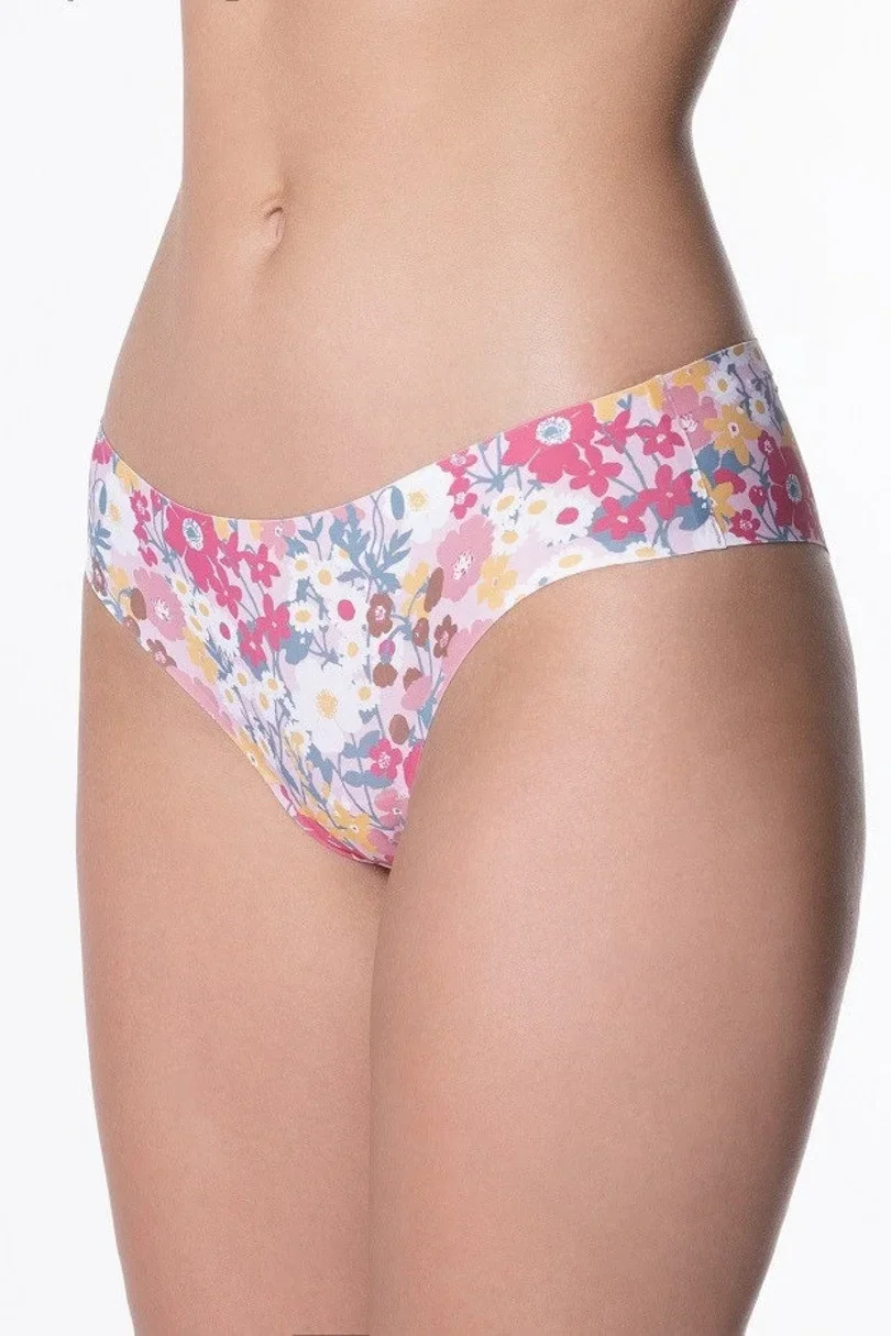 Klasické dámské kalhotky s květinovým potiskem, střižené laserem, neviditelné pod vypasovaným oblečením, bezešvé konce.