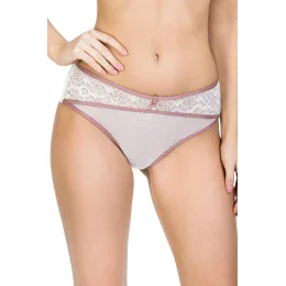 Plně vykrojené bikiny, vyrobené z krajky a tylu. Okraje jsou zakončeny lamów v barvě mocca. Zadní část je celá z tylu. Bavlněný klín
