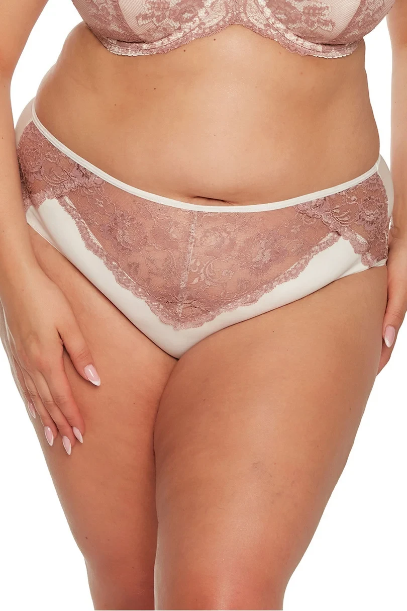 Celkové kalhotky z jemného tylu zdobené vpředu i vzadu růžovou krajkou.