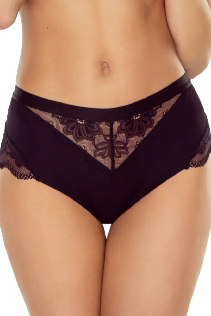 Přední díl z krajky a mikrovlákna, široký, měkký, elastický pas.