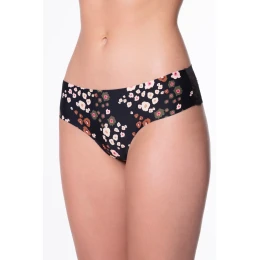 Dámské tanga kalhotky z mikrovlákna s květinovým potiskem. Zadní díl je bohatě vykrojený z ažurové krajky.