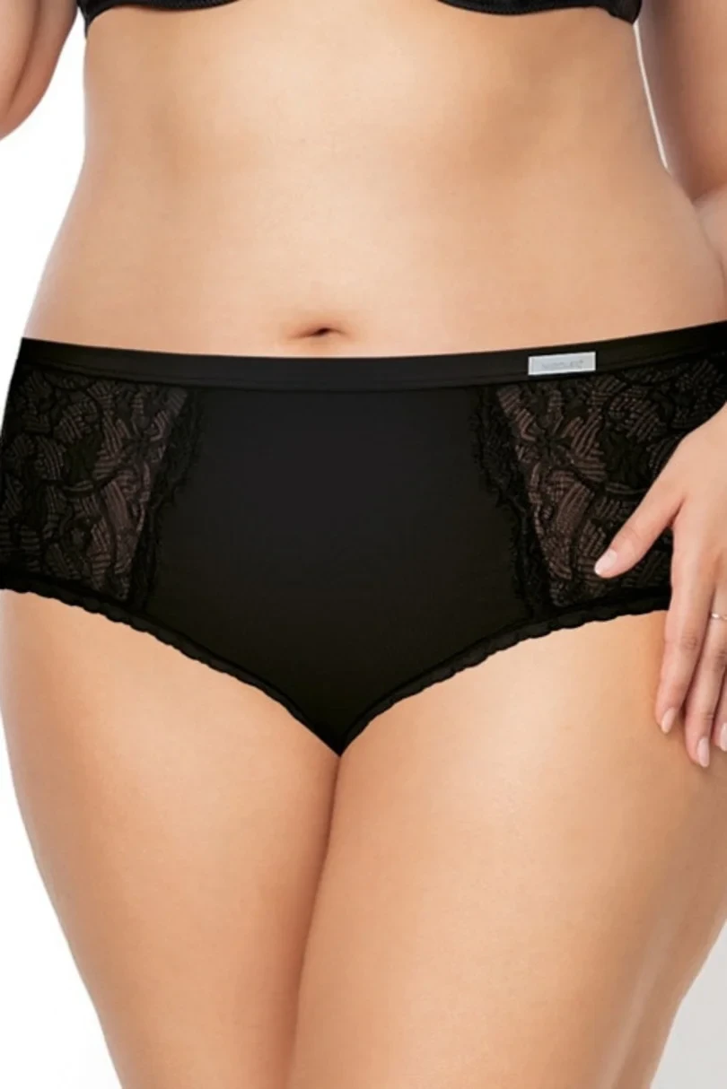 Na bocích a vzadu jsou jemné krajkové vsadky. V pase modelu je pohodlná plochá gumička.