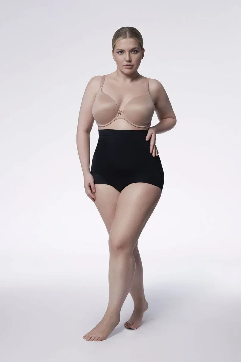 Kalhotky s vysokým pasem neviditelné pod oděv díky bezešvé, moderní technologii úpravy okrajů, vyrobené z jemného, prodyšného materiálu dokonale se přizpůsobí siluetě, speciální látkové panely vytvářejí pružné zeštíhlující zóny, zplošťují břicho, zeštíhlují pas, zvedají hýždě, mají bavlněnou hygienickou vložku, systém patentovaných silikonových proužků ANTI SLIDE® zabraňuje srolování a sklouzávání prádla.