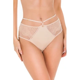 Klasické kalhotky z béžového tylu, na bocích je béžová síťovina, na které je našitá krajka.