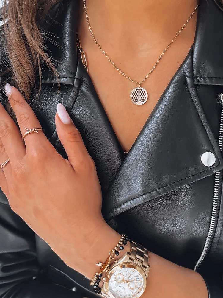 FILIPIS je velmi jemný návrh náhrdelníku ve zlaté barvě. Celek je ozvláštněn ozdobným přívěskem ve tvaru kruhu. Má zapínání s nastavitelnou délkou. Krásně doplní jakoukoli stylizaci. Skvěle se bude hodit i jako dárek.