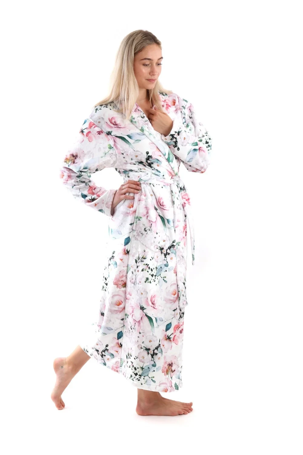 Župan Fiora z řady Secret Garden je lehký, příjemně hřejivý, dlouhý dámský župan s něžným vzorem s motivem rozkvetlé růžové zahrady. Jemné květy růží se skvěle doplňují se sametovým povrchem materiálu flannel fleece na kterém jsou natištěny. Nechte se hýčkat některým z modelů řady Secret Garden a poznejte jejich hedvábně jemný omak a pohodlný střih pro dokonalý pocit pohodlí a relaxace.