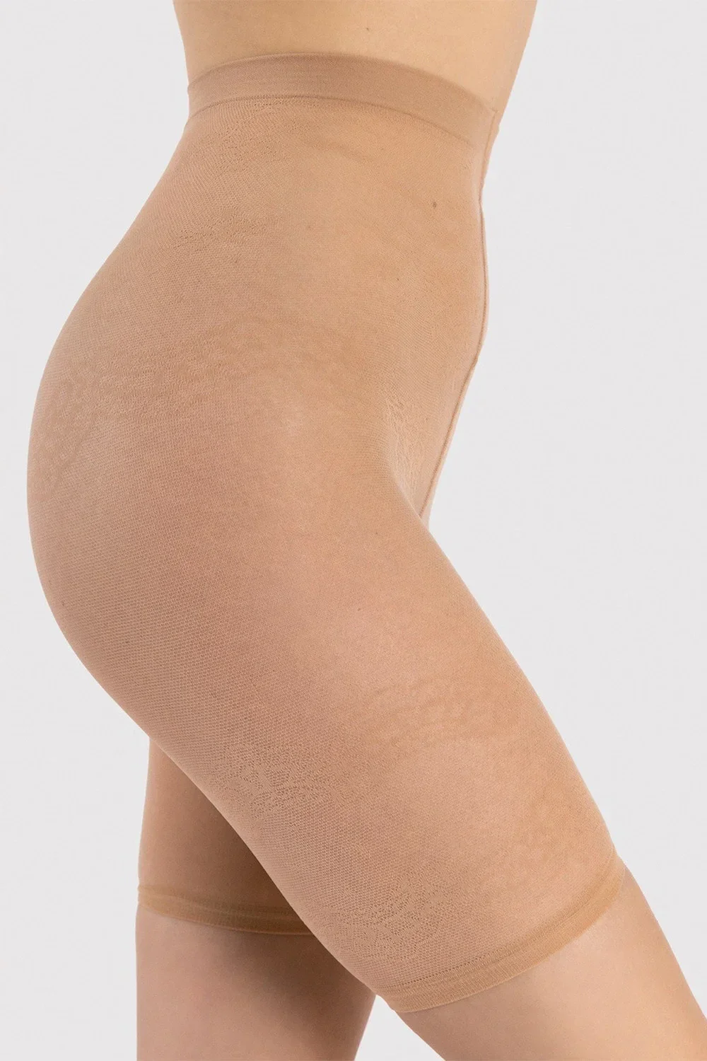 Punčochové zboží značky Fiore. model Barcelona 30 DEN M0013. výrobek je vyroben z 88 % polyamidu, 12 % elastanu. modelující oděv. bezešvý lem. délka: krátká. tloušťka: 30 DEN. dámské kalhotky s vysokým sedem. výrobek.
