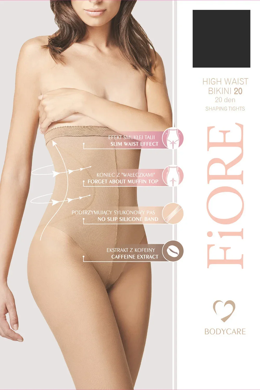 Punčochové zboží Fiore, High Waist Bikini 20 den M5218, z 80% polyamidu, 20% bavlny, bez vyznačených špiček, 20 DEN, pro ženy, označené kalhotky.