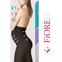Punčochové zboží značky Fiore, model Mama 100 den M5215, vyrobeno z 80% polyamidu, 20% elastanu, bez vyznačených špiček, těhotenské oblečení, tloušťka: 100 DEN, dámské oblečení, vyznačené kalhotky.
