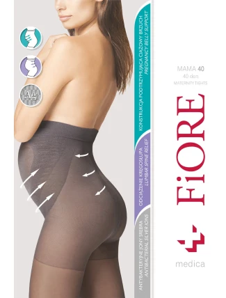 Punčochové zboží značky Fiore, Model Mama 40 den M5209, vyrobeno z 80% polyamidu, 20% elastanu, bez vyznačených špiček, těhotenské oblečení, tloušťka: 40 DEN, dámské oblečení, označené kalhotky.
