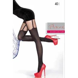 Punčochové zboží značky Fiore. model Milla 40 den. výrobek je vyroben z 87 % polyamidu, 12 % elastanu, 1 % bavlny. vlastnosti výrobku: sexy imitace punčoch. bez vyznačených prstů. tloušťka: 40 DEN. dámský výrobek.