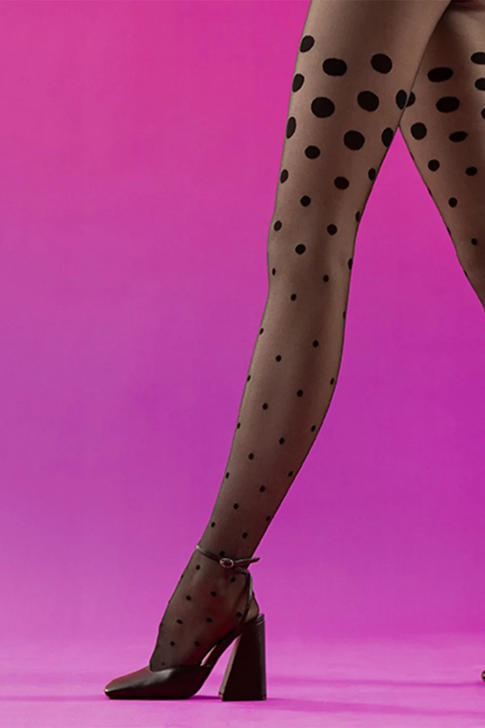 Punčochové kalhoty Fiore, model Natalie 15 DEN G6082, vyrobeno z 90% polyamidu, 10% elastanu, bez vyznačených špiček, tloušťka 15 DEN, bez vyznačených nohaviček.