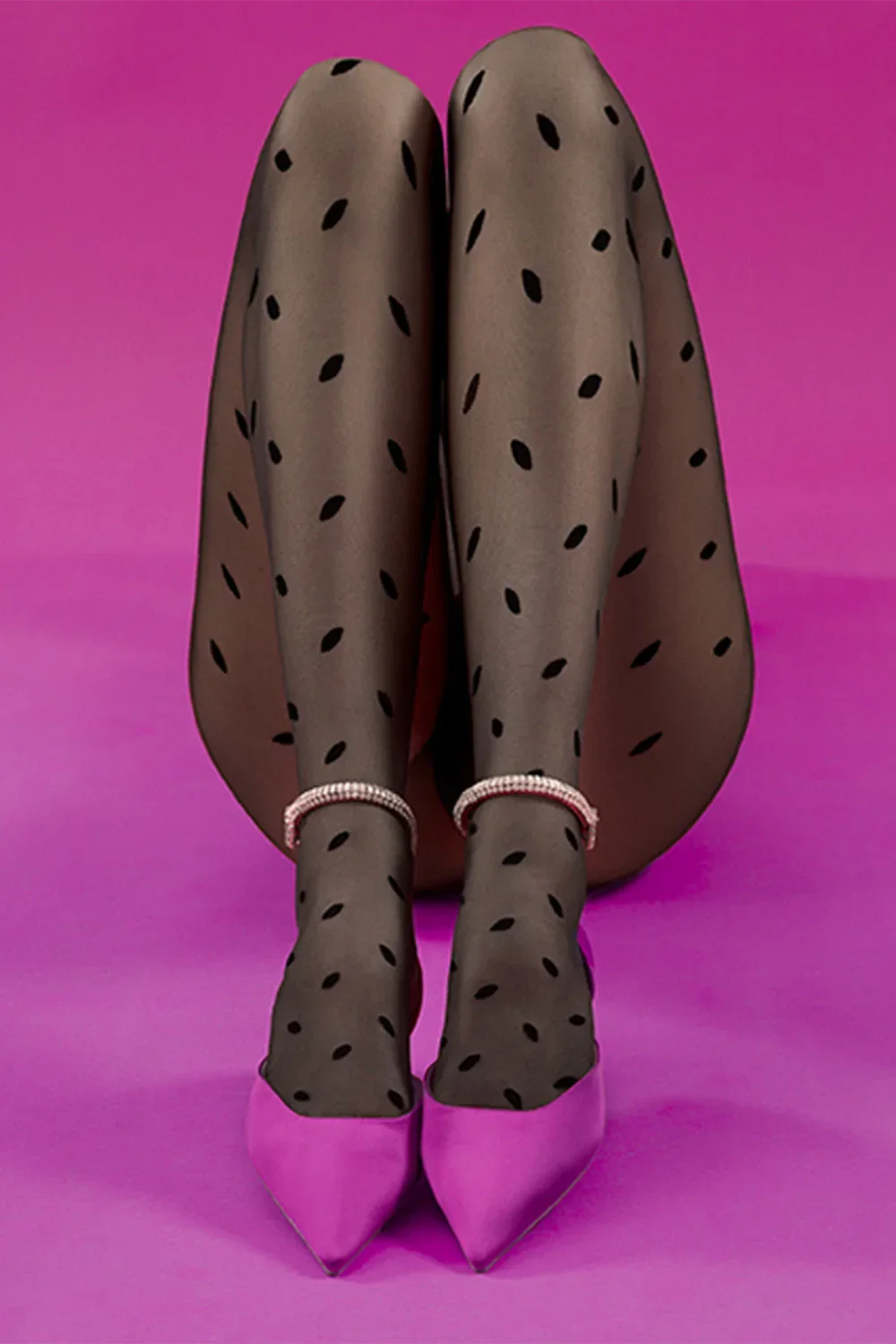 Punčochové kalhoty Fiore, model Sandy 15 DEN G6078, z 90% polyamidu, 10% elastanu, bez vyznačených špiček, tloušťka 15 DEN, bez vyznačených nohaviček.