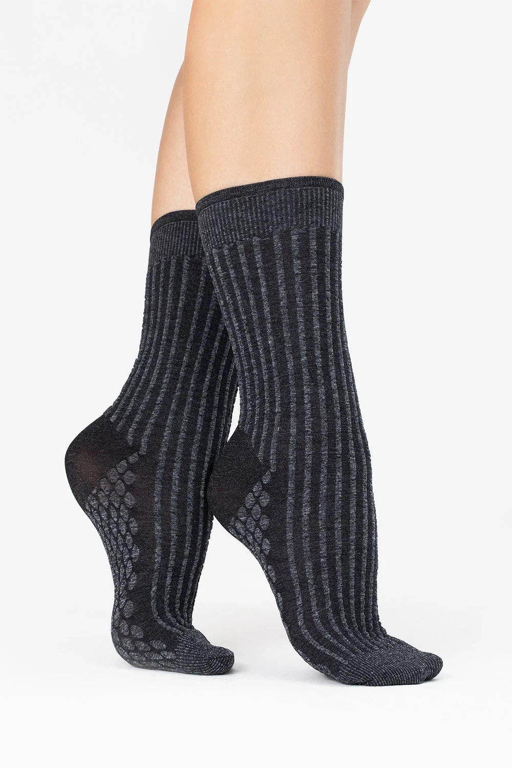 Ponožky jsou ozdobené jemným vypouklým vzorem. Model má lem, který při nošení netlačí.