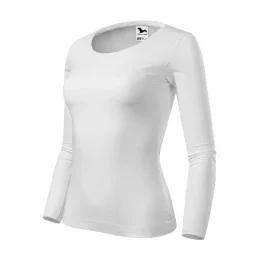 lehce vypasovaný střih s bočními švy hlubší kulatý výstřih úzký lem průkrčníku z žebrového úpletu 1:1 s 5 % elastanu vnitřní část průkrčníku začištěna páskou z vrchového materiálu zpevnění ramenních švů páskou dlouhé rukávy