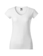 lehce vypasovaný střih s bočními švy hlubší výstřih ve tvaru V úzký lem průkrčníku z vrchového materiálu s 5 % elastanu vnitřní část průkrčníku začištěna páskou z vrchového materiálu zpevnění ramenních švů páskou rukávy kratší délky silikonová úprava